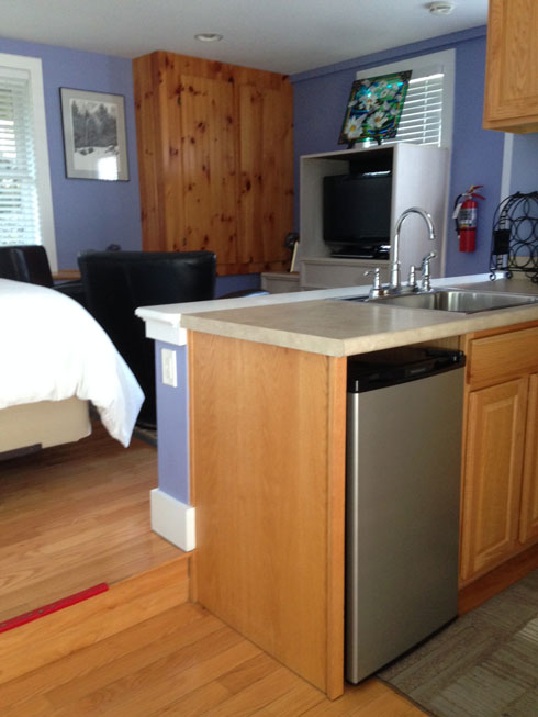 Large Studio With King Sized Bed, 3/4 Bath, Flat Screen TV, DVD Player, Private Entrance, Dining Area, Kitchenette (no stove) Microwave, Coffee Maker, First Floor